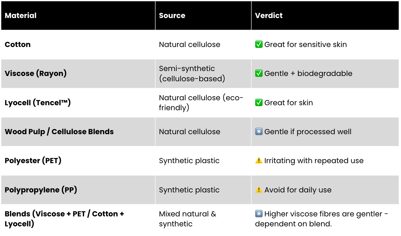 ➡️ Materials used to make the absorbent fabric in cleansing wipes
