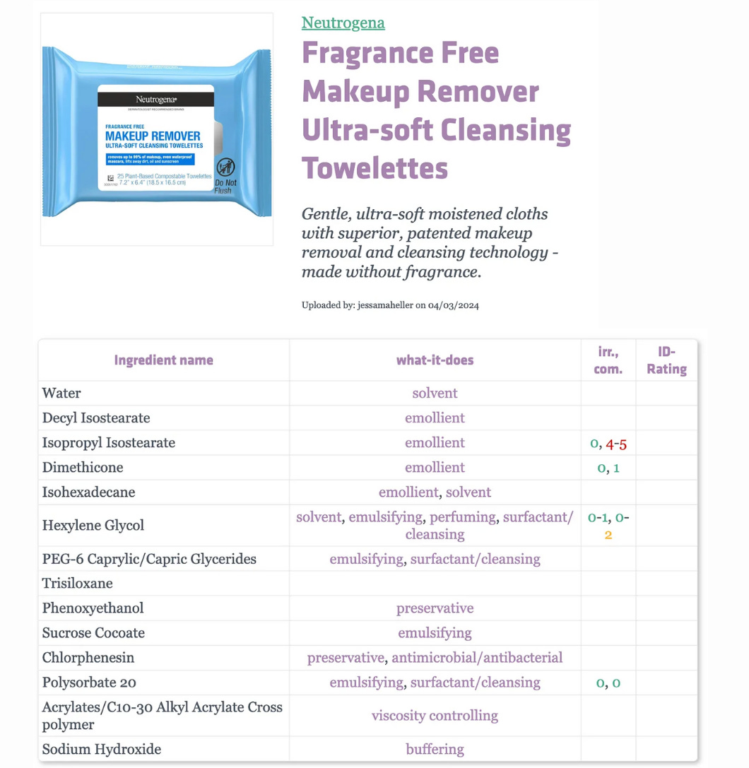 Most times when we see a product that claims to be ‘gentle’ and ‘fragrance-free’, we associate it with being ‘safe’. But is this really the truth? We did a quick analysis of the fragrance-free cleansing wipes by Neutrogena to see if they are safer than the fragranced ones.