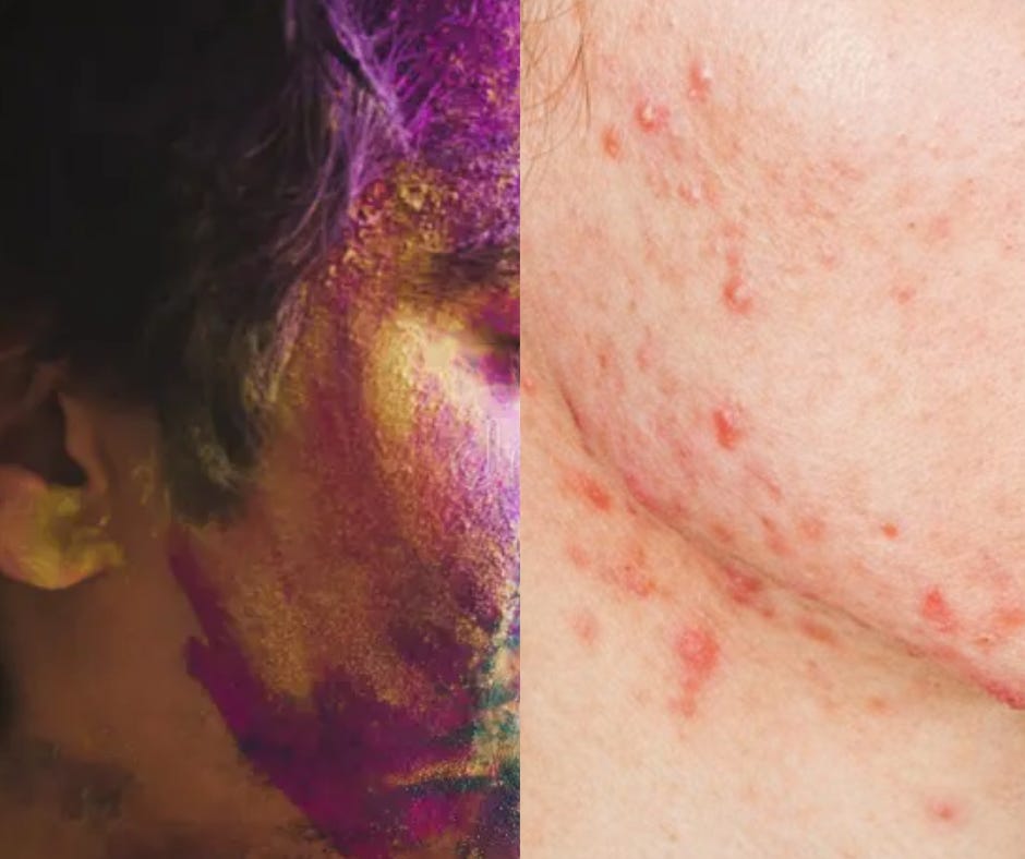 Alkaline additives in some Holi colours can disrupt the skin’s natural pH and increase dryness and reactivity.