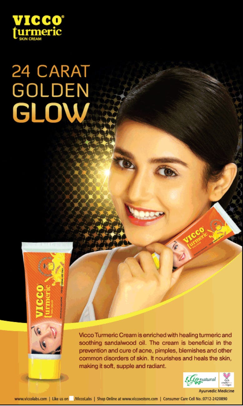 It has been a staple in many households, and continues to remain so in some - because of its ‘natural’ and ‘ayurvedic’ properties. Now don’t get me wrong - I’ve considered it too. As a teenager, it felt like the obvious choice (thanks to the catchy jingle and the national obsession with haldi). Don’t judge me - I fell for Fair and Lovely too back then (I’ve written about it before).