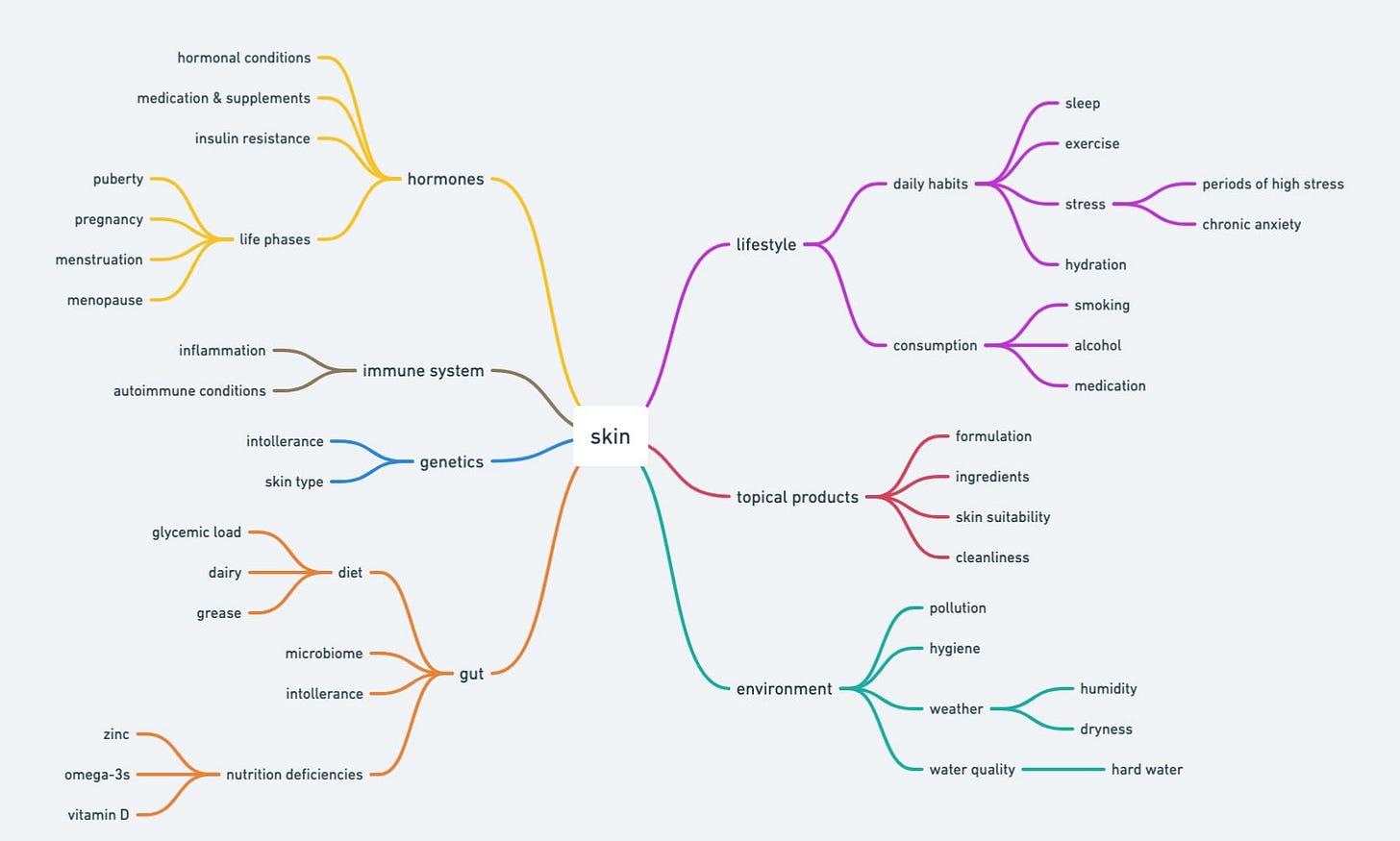 Skin is a complex system influenced by multiple factors - diet, hormones, lifestyle, genetics, environment - and acne is a sign of that system malfunctioning. It’s a skin health issue, not just a cosmetic one. It cannot be treated in isolation or only with topical creams.