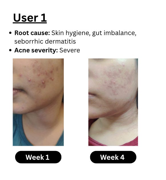 So many of you showed interest that the cohort got over-subscribed almost immediately. We’re about half-way through the first cohort, and already seeing ~85% people see a drastic change in their skin health.