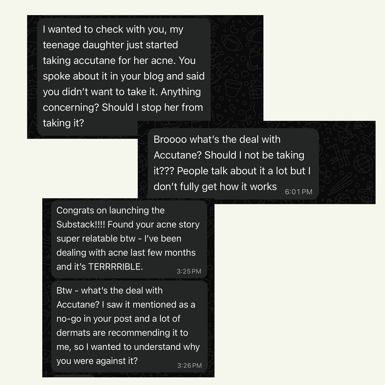 I do plan to answer all but the third question felt the most urgent - given a lot of you wrote in saying you’re on Accutane right now.